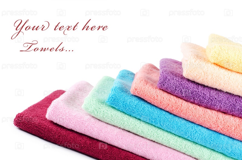 Полотенца, изолированные на белом фоне с образцом текста
