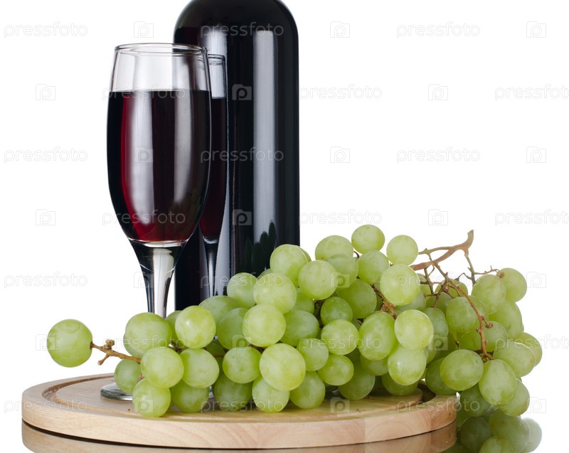 Красное вино и виноград, изолированные на белом фоне