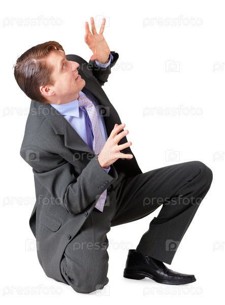 Молодой человек испугался и сел на белый фон