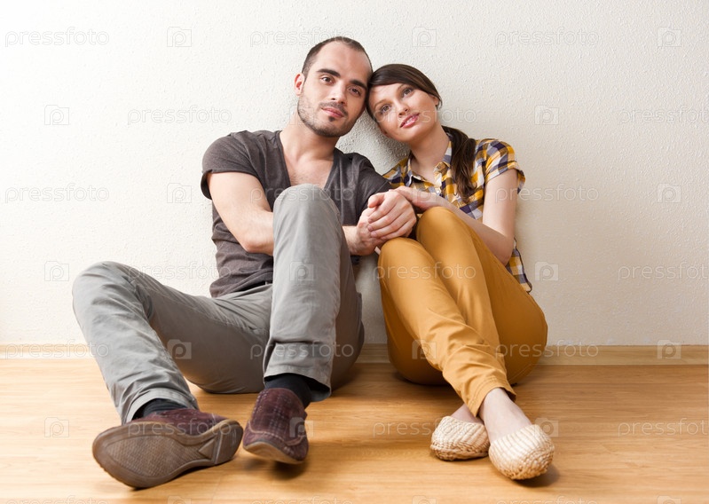 Семейная пара планирует свое будущее в новой квартире, концепция ипотеки и строительства