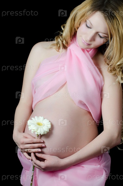 Беременная женщина на черном фоне