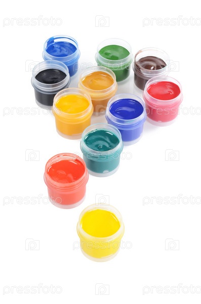 Баночки с красками на белом фоне