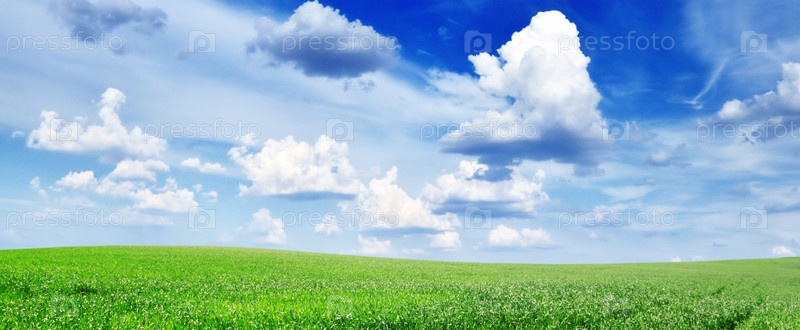 Поле с травой и голубое небо