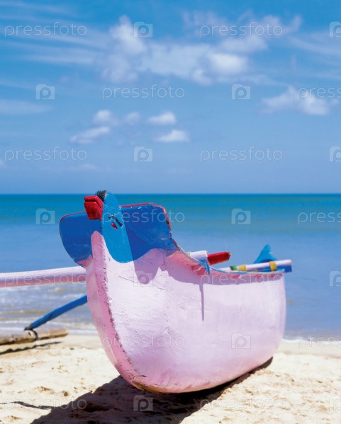 Деревянная лодка на песчаном пляже