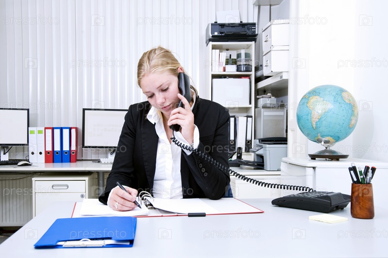 Бизнес-леди разговаривает по телефону в офисе