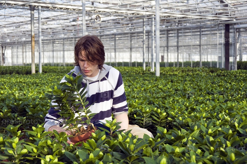 Мужчина в промышленной теплице