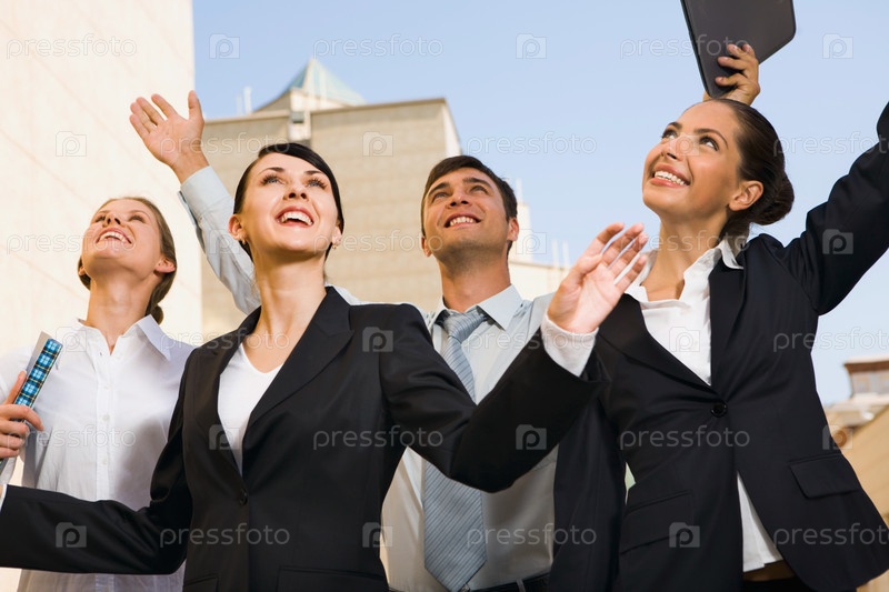 Четыре успешных бизнесмена после того, как они выиграли грант