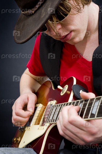 Блюзовый гитарист играет мелодию