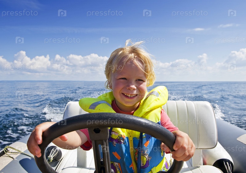 Мальчик за рулем катера
