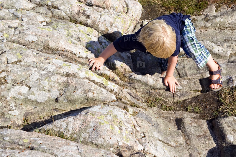 Мальчик лезет на гору