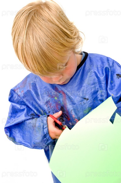 Мальчик, режущий лист бумаги