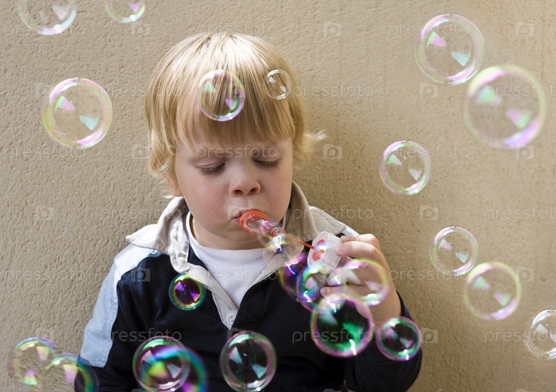 Мальчик пускает мыльные пузыри