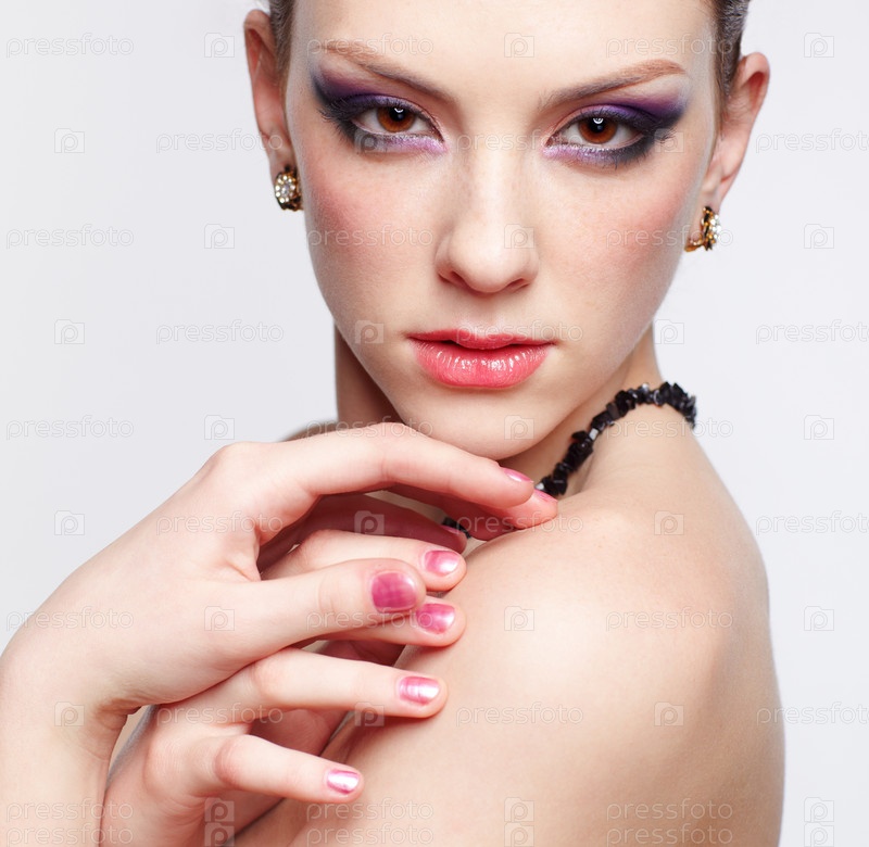 Портрет молодой красивой женщины на сером фоне