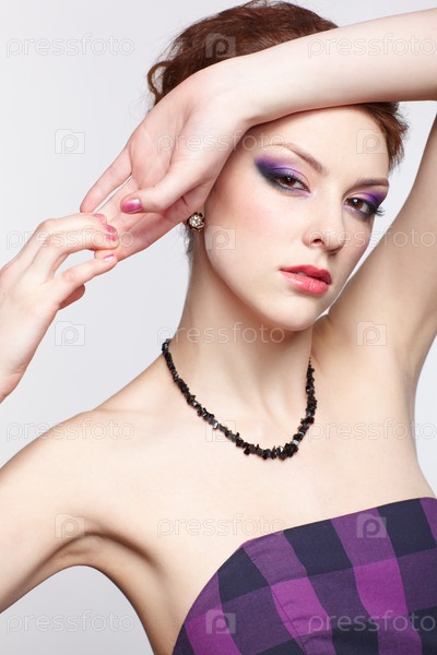 Портрет молодой красивой женщины на сером фоне
