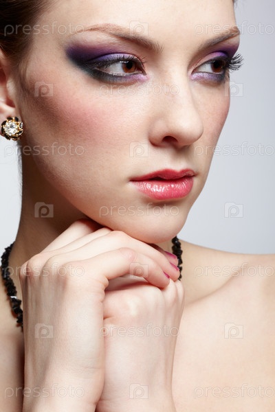 Лицо модели с ярким макияжем