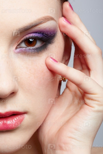 Половина лица красивой женщины, прикасающейся к своему лицу