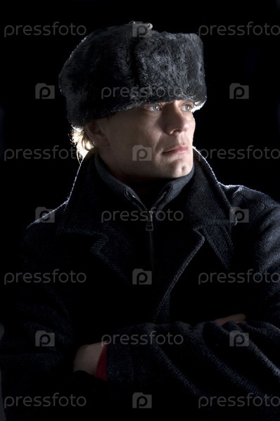 Мужчина в меховой шапке и шерстяном пальто