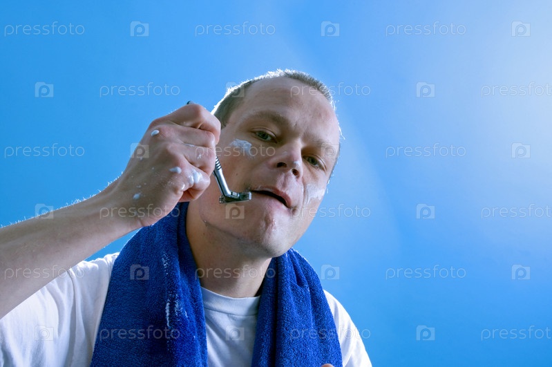 Мужчина среднего возраста бреется