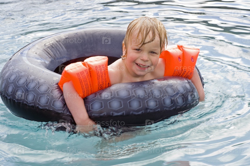 Мальчик плавает в бассейне