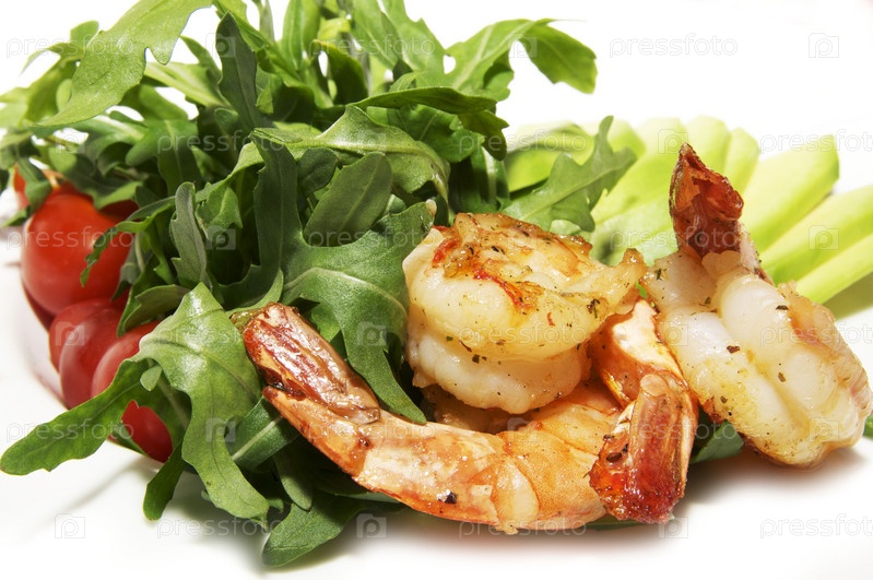Креветки с помидорами и зеленью