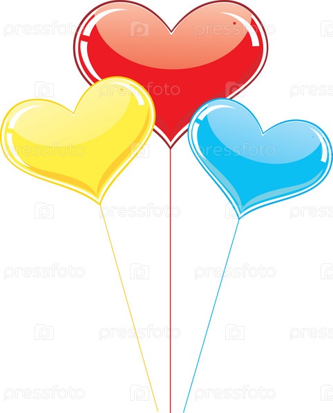 Три воздушных шарика в виде сердец