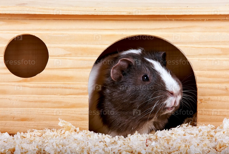 Морская свинка в деревянном домике