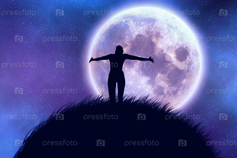 Силуэт девушки на фоне луны