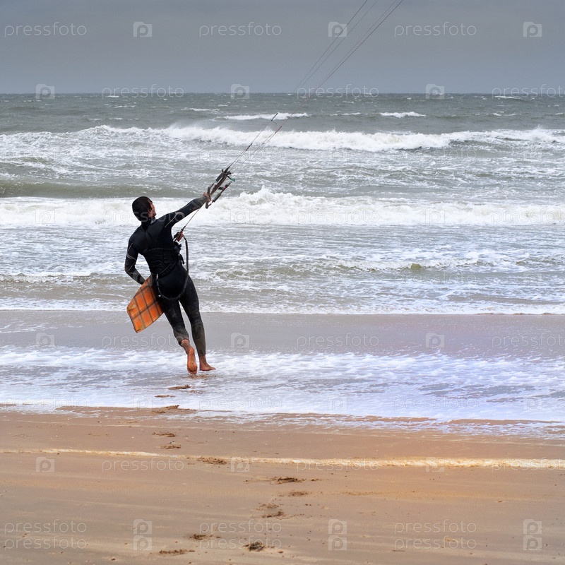 Кайт-серфер на пляже в ветреный день