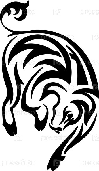 Черно-белое изображение быка в племенном стиле