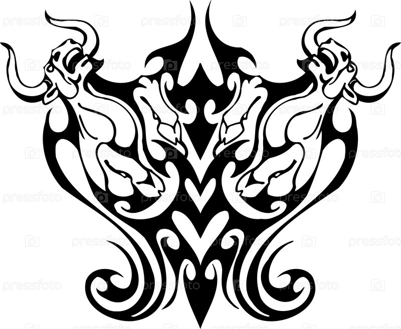 Черно-белая иллюстрация быка в стиле "трайбл"
