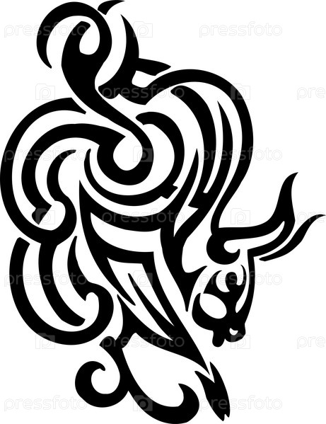 Черно-белая иллюстрация быка в стиле "трайбл"