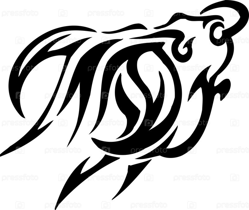 Черно-белая иллюстрация быка в стиле "трайбл"
