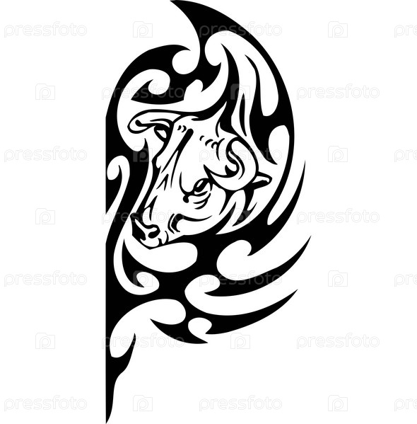 Черно-белая иллюстрация быка в стиле "трайбл"