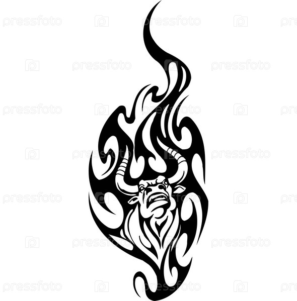 Черно-белая иллюстрация быка в стиле "трайбл"