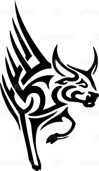 Черно-белое стилизованное изображение быка
