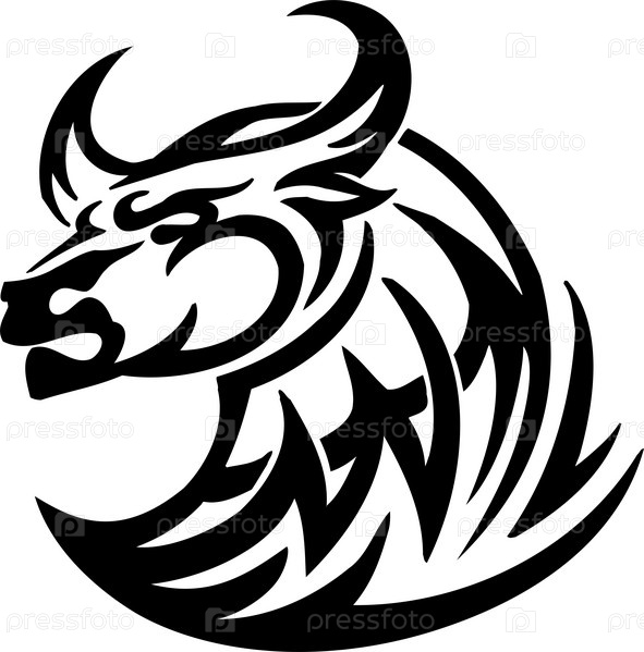 Черно-белая иллюстрация быка в стиле "трайбл"