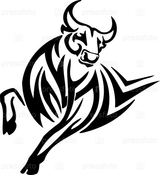 Черно-белая иллюстрация быка в стиле "трайбл"