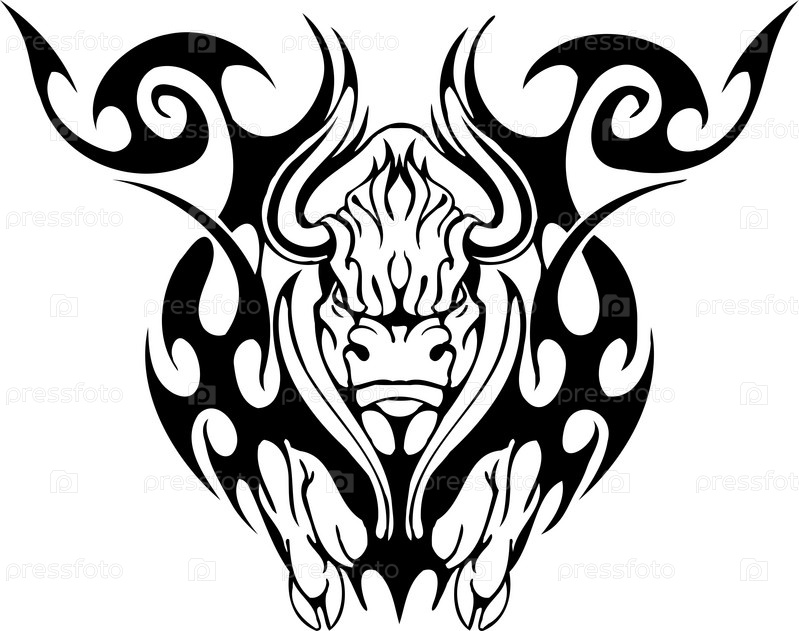 Черно-белое стилизованное изображение быка