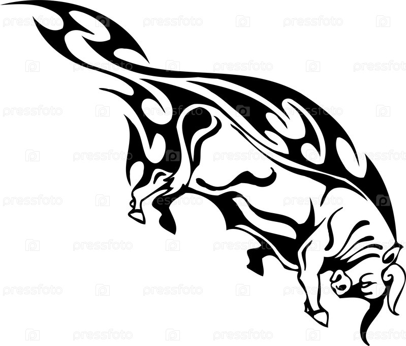 Черно-белое стилизованное изображение быка