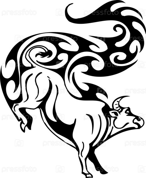 Черно-белое стилизованное изображение быка