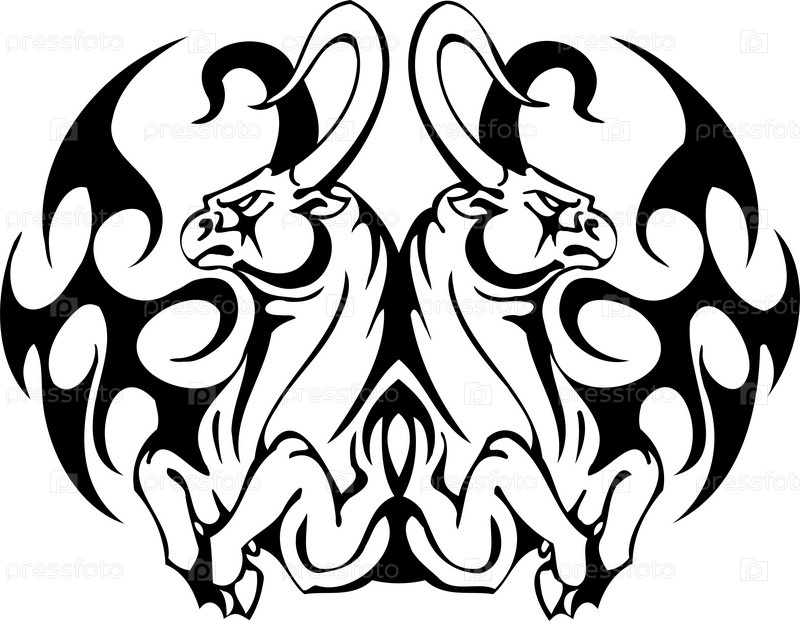 Черно-белое стилизованное изображение быка
