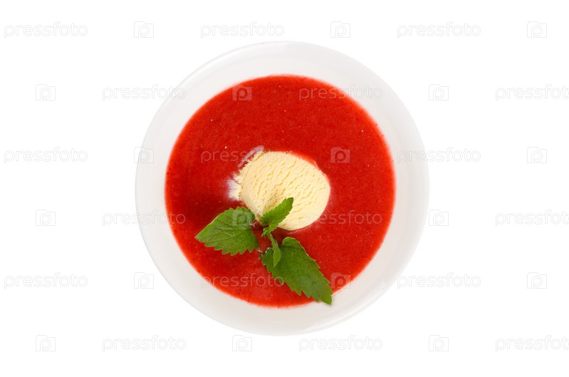 Клубничный суп с мороженым и мятой
