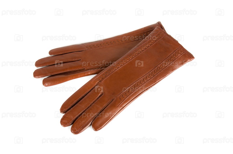 Коричневые современные женские кожаные перчатки, изолированы на белом фоне
