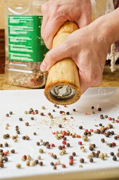 Женские руки держат мельницу для перца