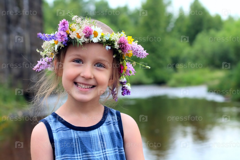 Девочка с цветочным венком на голове