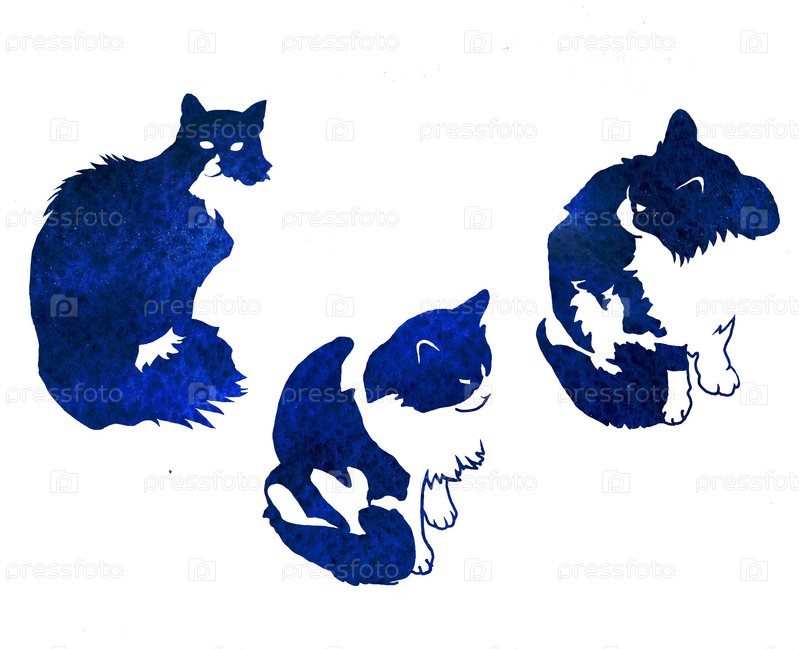 Три черных кошки на белом фоне