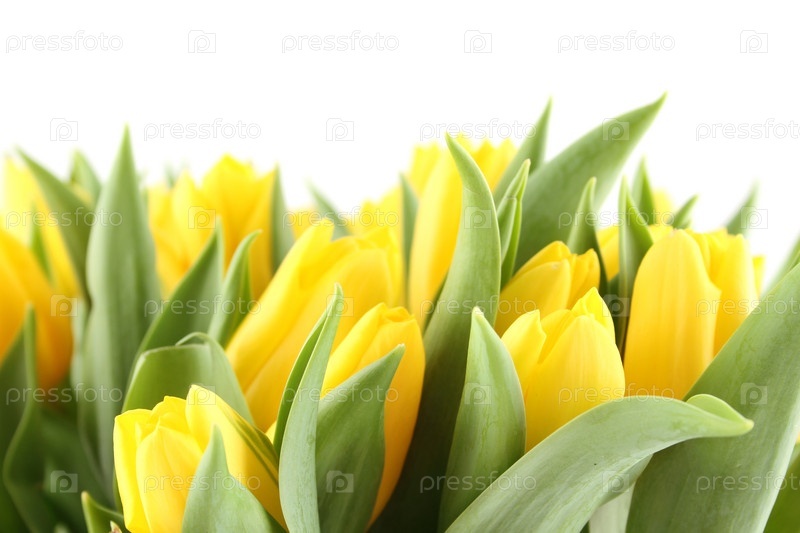 Красивый букет из белых тюльпанов на белом фоне
