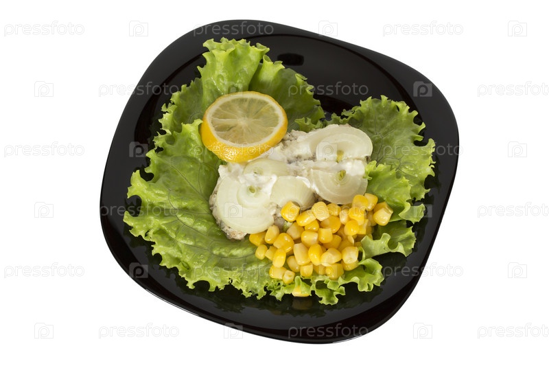 Рыбное блюдо на черной тарелке