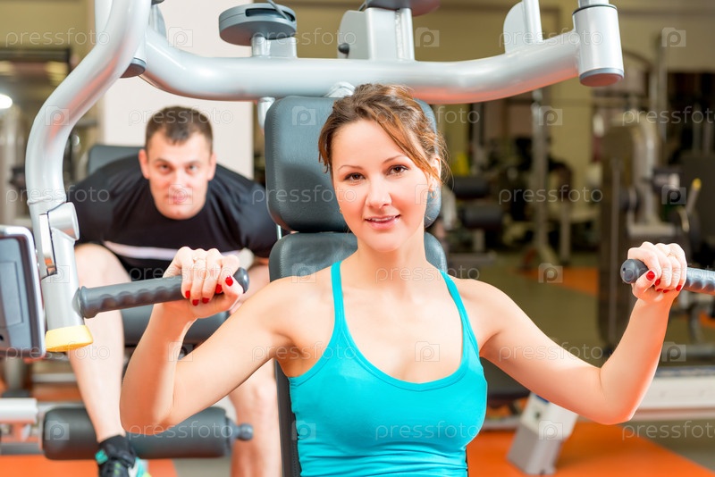 Девушка занимается на тренажере