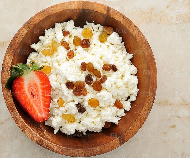 Творог с изюмом и клубникой